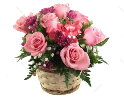 Pink Flowers Basket