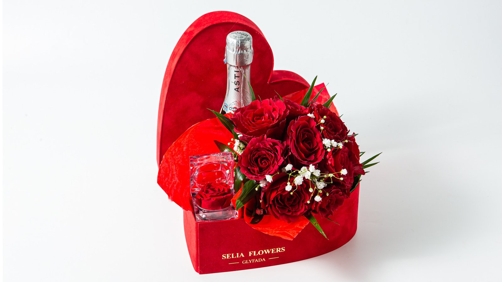 Velvet Heart with roses & martini 200ml & diamond red rose